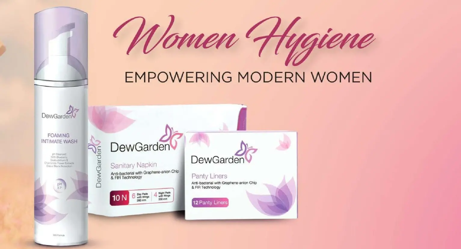 Our Prime product on Women Hygiene is DewGarden Foaming Intimate Wash, Sanitary Napkin and Panty liners.